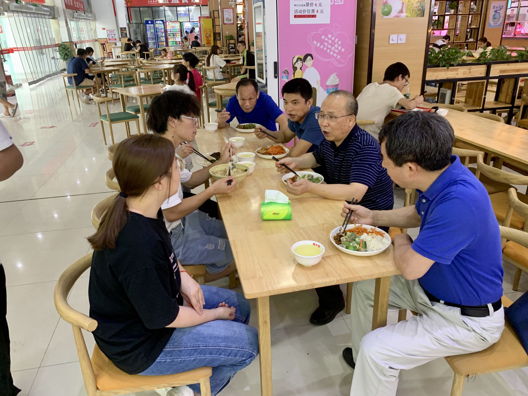 调研结束,校领导一行在学生第三食堂与同学一同就餐并进行亲切交流,认真听取了同学们对食堂饭菜质量、价格及服务方面的意见和建议,要求集团和食堂多多倾听同学们的意见,在确保饮食卫生安全的前提下尽量丰富同学们饭菜花色品种,不断提升食堂服务水平。