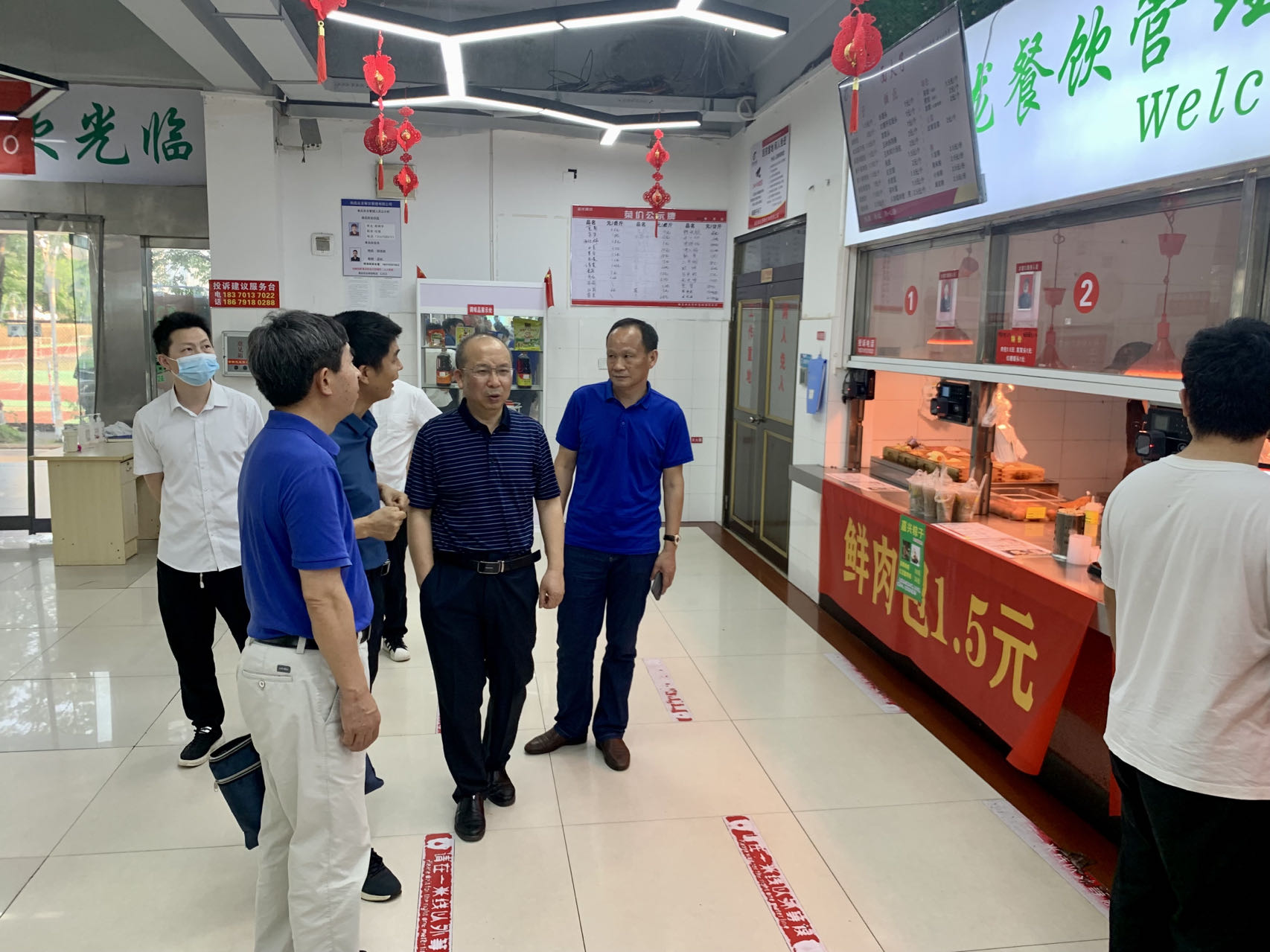 6月14日,为深入推进学习贯彻习近平新时代中国特色社会主义思想主题教育,校党委委员、副校长曾志将,校党委委员、组织部部长郭庆舜在后勤服务集团主要负责人及餐饮部门负责同志陪同下,到欧冠各学生食堂开展调研。