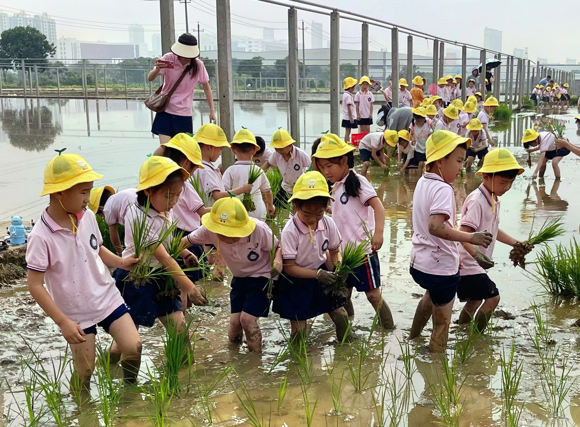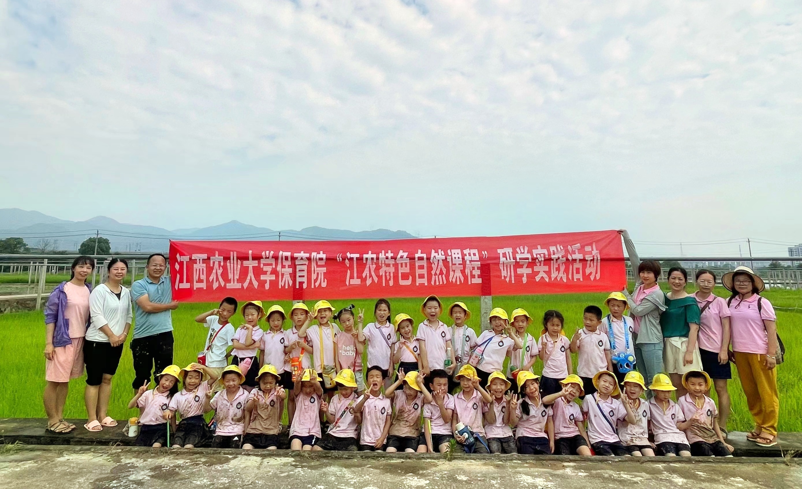 农学院专家手把手指导小朋友进行插秧、抛秧。孩子们在田间大课堂里亲近自然、在玩乐之中真实劳作。亲手种下属于自己的一片水稻,感受农民劳作的不易。稚嫩的双手不止插下秧苗,也播种下热爱自然、热爱劳动和感恩社会的美好情感。