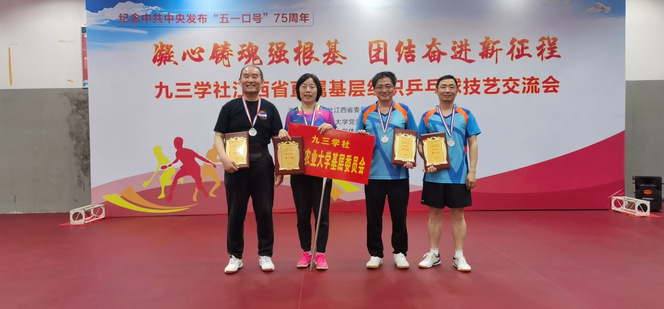 5月21日,“凝心铸魂强根基 团结奋进新征程”纪念中共中央发布“五一口号”75周年乒乓球技艺交流会在江西财经大学体育馆举行。来自九三学社省直属基层组织15个代表队参加了比赛。欧冠九三学社社员刘勇、裘利洪、施建敏、王华参赛队经过顽强拼搏,取得了混合团体比赛亚军的好成绩。本次比赛由九三学社江西省委员会主办。