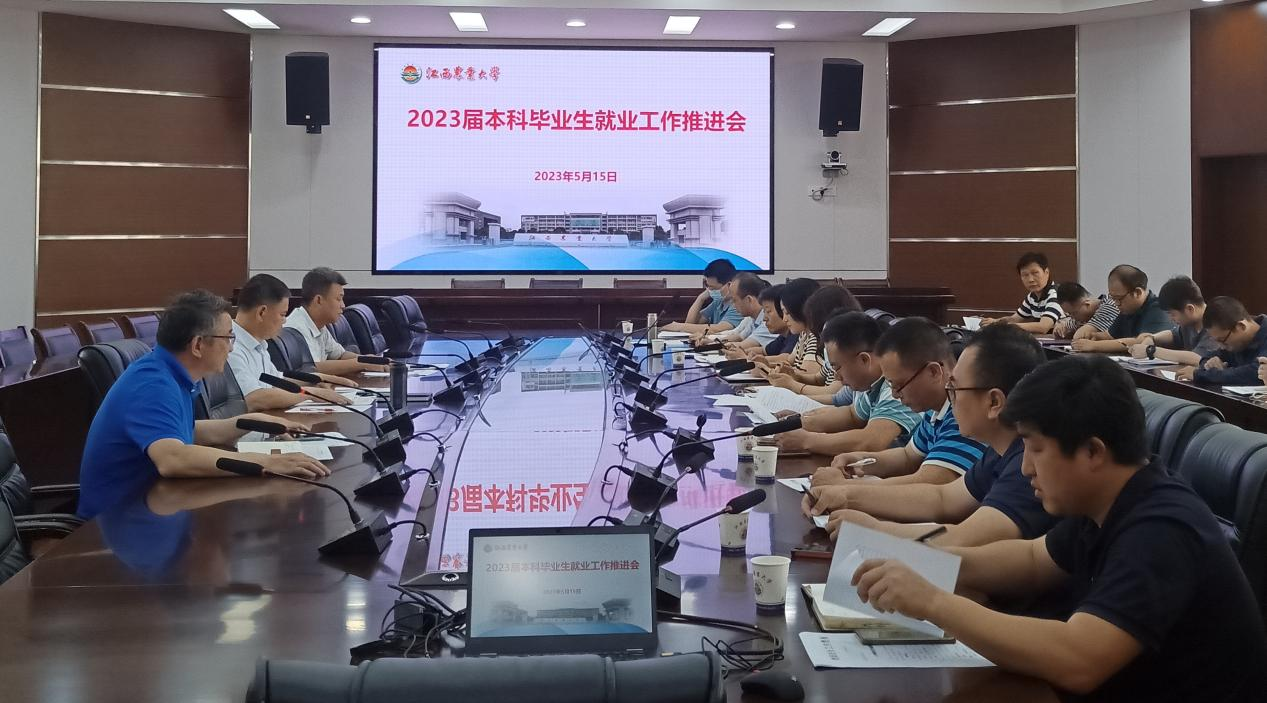 为进一步推动2023届本科毕业生就业工作,5月15日下午,学校在校办二楼圆厅会议室召开第五次2023届本科毕业生就业工作推进会。校党委副书记蔡海生出席会议并讲话,招生就业处、学工处负责人,各学院党委副书记以及全体就业工作人员参加了会议。