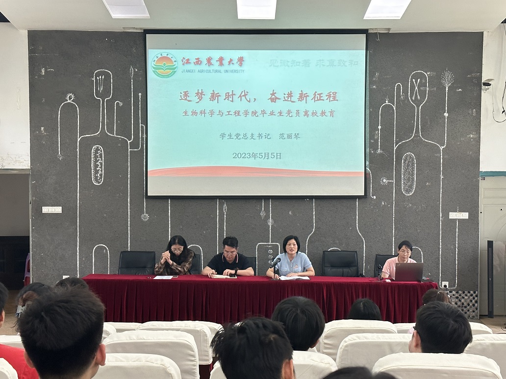 为深入学习贯彻习近平新时代中国特色社会主义思想,落实立德树人根本任务,进一步强化毕业生党员意识和党员身份教育,激励毕业生党员坚定理想信念,主动承担社会责任,以实际行动诠释党员初心使命,5月5日上午,生物科学与工程学院开展2023届毕业生党员离校教育。