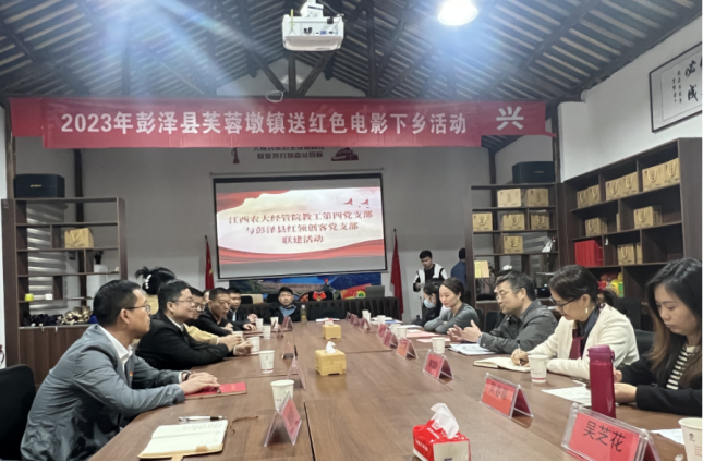 为深入学习贯彻党的二十大精神,充分发挥党建引领作用,积极探索支部联建机制,4月22日,经济管理学院教工第四党支部成员赴九江市彭泽县芙蓉墩镇湖西村与彭泽县红领创客党支部以联合共建的形式,开展“党建+科研+社会服务”的实践活动。