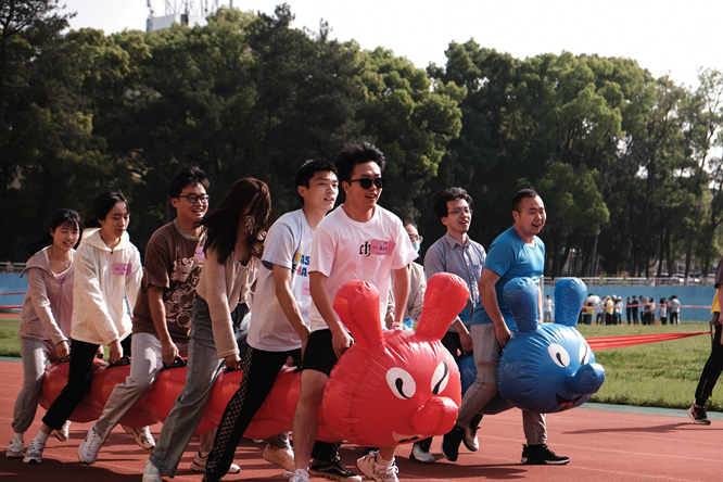 本次趣味运动会围绕“趣味”这一主题设有蒙眼毛毛虫、袋鼠跳、摸石头过河、多人多足、轨道传球、快乐毛毛虫六个团体项目,共有来自15个学院72支队伍的600多名研究生参加运动会。参赛研究生们个个精神抖擞、斗志昂扬地投身各项比赛活动。快乐毛毛虫、袋鼠跳、多人多足等项目,不仅检验了同学们的体力,更考验了团队的凝聚力和向心力;蒙眼毛毛虫、轨道传球等项目,不单是智慧与体力的角逐,更是默契与信任度的完美比拼。赛场上,加油、欢呼、喝彩声此起彼伏,领先队伍一鼓作气,落后队伍锲而不舍,每一位参赛者都全力以赴,每一支参赛队伍都在团结拼搏,生动展现了新时代研究生团结协作、永不言弃的青春风貌。