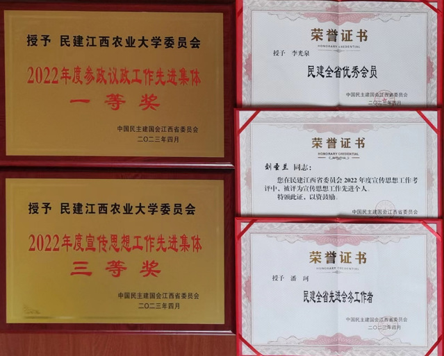近日,民建江西省委会发文,对全省优秀会员、先进会务工作者和先进集体等进行了表彰。民建欧冠官方网站委员会荣获2022年度全省参政议政工作先进集体一等奖、2022年度宣传思想工作先进集体三等奖,会员潘珂荣获民建省先进会务工作者称号,会员李光泉荣获民建全省优秀会员称号,会员刘圣兰荣获宣传思想工作先进个人称号。