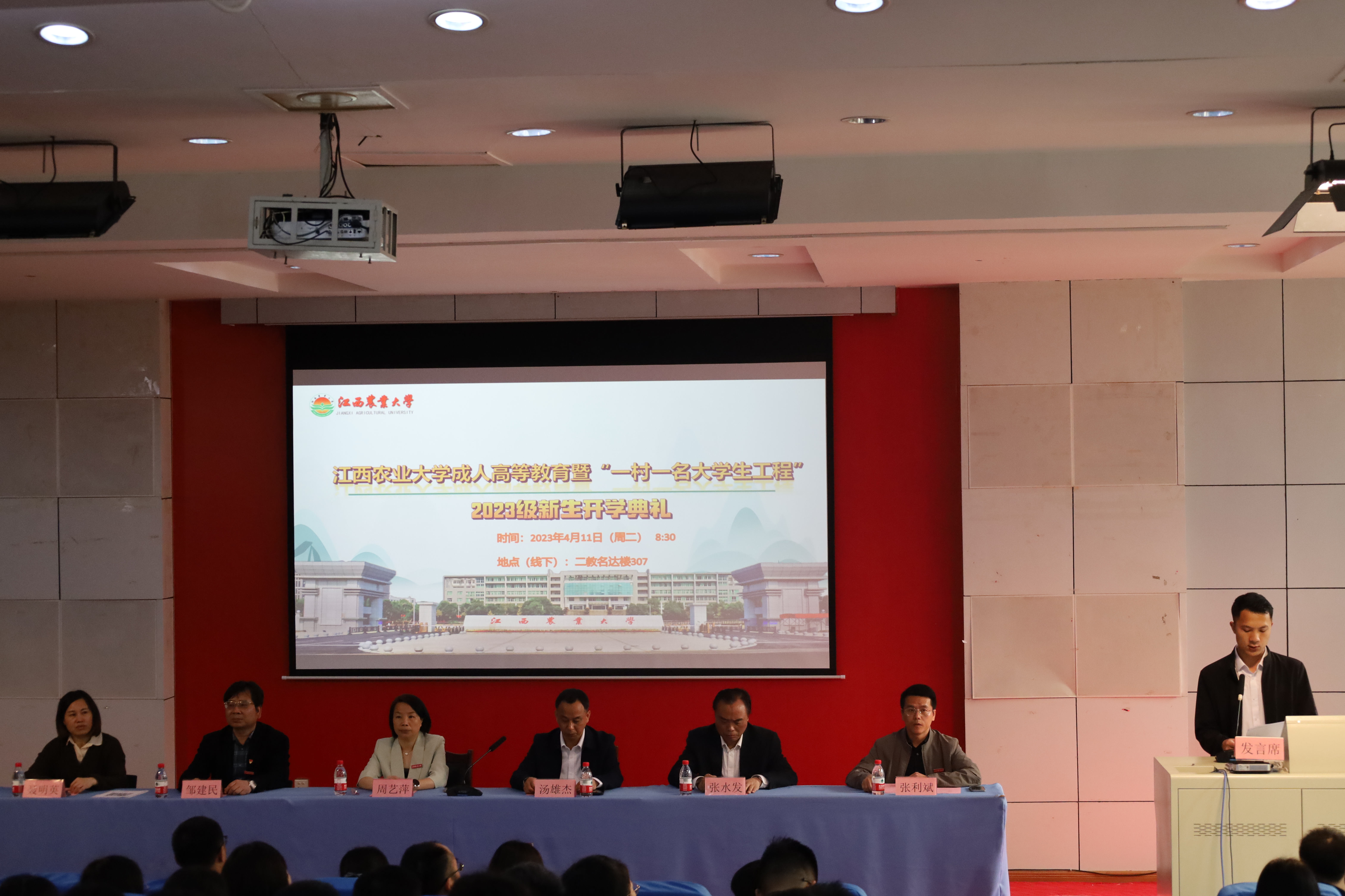 仪式在雄壮的国歌中拉开序幕,学院负责人致辞,简要介绍了学校和学院的基本情况,指出自2011年开始承担全省“一村一名大学生工程”培养任务起,学校就始终以省委、省政府的最新决策部署为指导,扎实推进该项工程,希望2023级学员珍惜来之不易的学习机会,尽快实现身份角色的转变,立志学成返乡,投身乡村振兴建设,并强调要努力肩负起振兴乡村的历史使命;要培育适应振兴乡村需要的合格人才;要努力提高服务“三农”的能力本领。