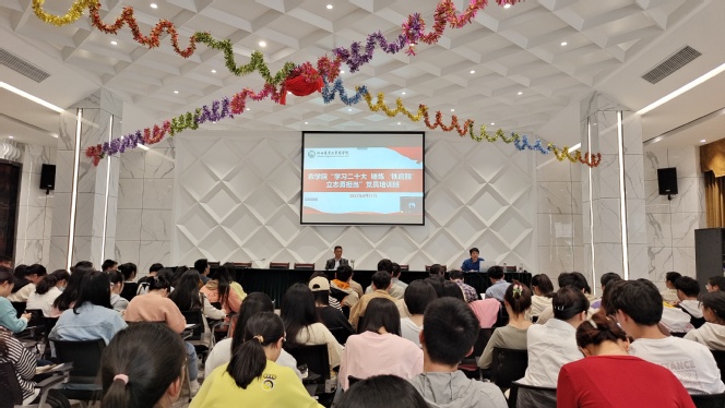 4月11日,农学院在拾禄楼二楼报告厅举办学生党员学习贯彻党的二十大精神培训班开班仪式,本次培训班以“学习二十大,锤炼‘铁肩膀’,立志勇担当”为主题,263名学生党员通过线上线下的方式参加了开班式。学院党委书记方加海以《立志复兴伟业,踔厉奋发前行》为主题为培训班学员讲授了专题党课。