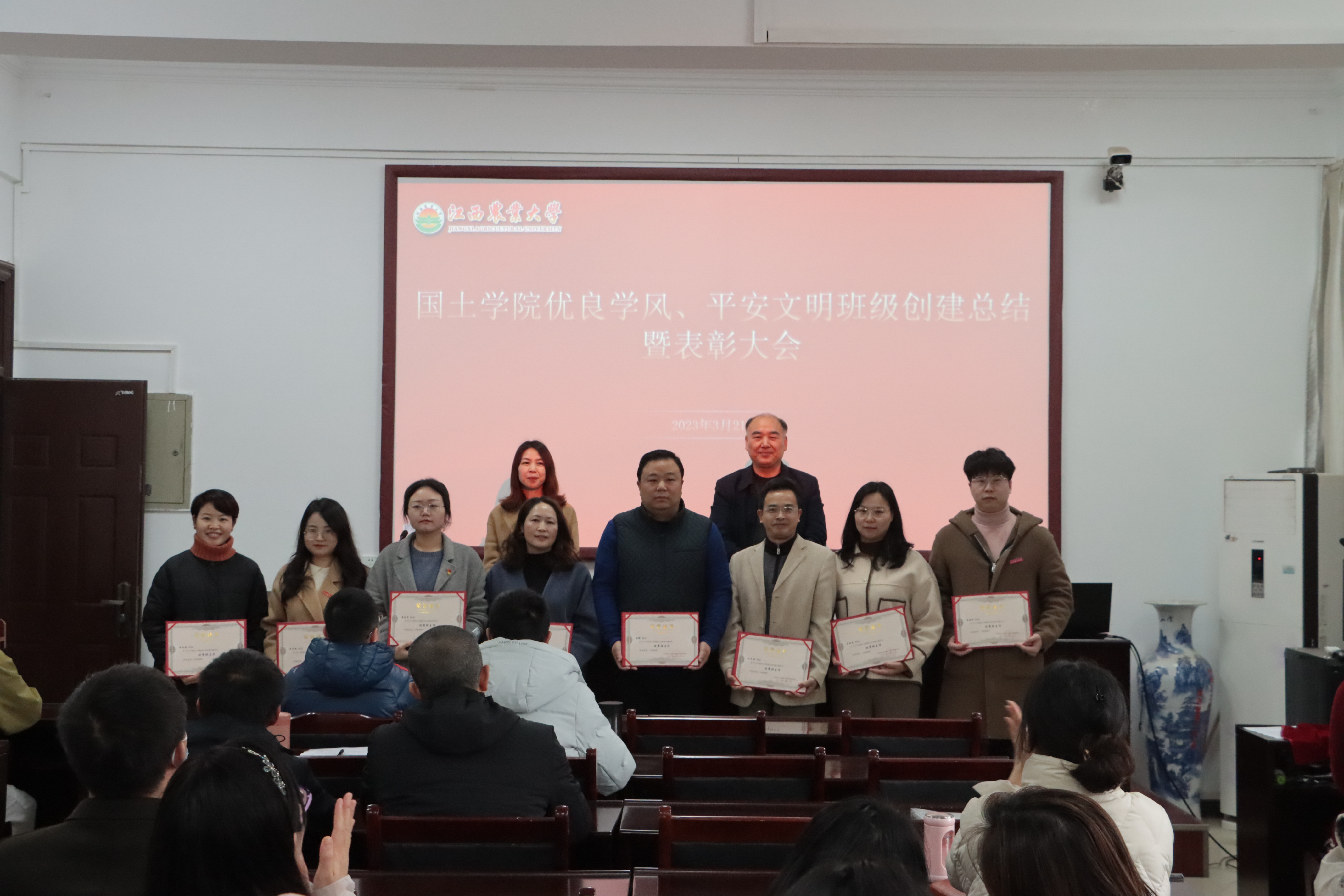 为充分发挥班级的教育功能,优化育人环境,发挥榜样的模范作用,营造浓厚的院风学风,3月21日下午,国土学院在院办209开展优良学风和平安文明班级创建总结暨表彰大会。学院领导班子、全体班主任和班级负责人参加会议。