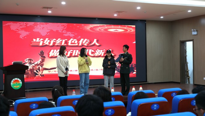 互动环节中,同学们争先恐后地上台表达自己的所想所感。“雷锋不是一个人,而是一种精神,如中华优秀传统文化一样融入到了我们的骨血里。追光的人才会光芒万丈,我们不仅要去学习雷锋,更要去成为新时代的雷锋。”农学院植保2102班毋睿莹同学发表感言。吴锡有亲手为上台互动的同学佩戴了自制的限量版雷锋勋章。