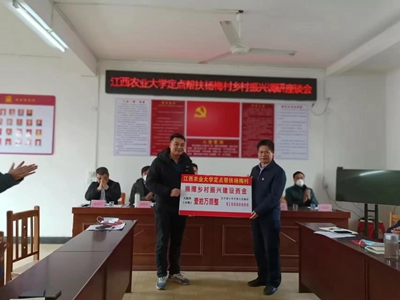 座谈之后,蔡海生代表学校党委向杨梅村捐赠乡村振兴工作经费十万元,并慰问了全体驻村工作队员。