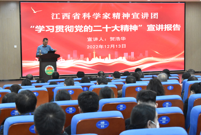 为深入学习贯彻党的二十大精神,12月13日下午,党的二十大精神宣讲报告会暨江西省科学家精神宣讲报告会在图书馆报告厅举办。校党委委员、副校长、江西省科学家精神宣讲团团长贺浩华作了《初心不改,逐梦种业,勇攀高峰》报告。省科协宣调部负责人,欧冠部分教工党员、教职工等参加报告会。