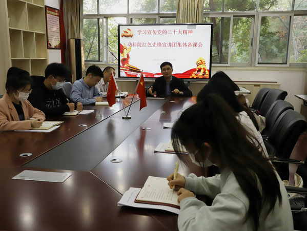“同志们,‘上接天气,下接地气’是大家给全院师生宣传党的二十大精神必须要抓实的两个关键,宣讲前要原原本本、原汁原味地读二十大报告,要学懂弄通悟透党的二十大精神,善用‘大白话’,结合二十大报告内容,列举身边事、身边人,将重要论述和理论知识转化为学生喜欢的通俗语言……”校党委委员、副校长张高亮在动物科学技术学院红色先锋宣讲团集体备课会上与宣讲团成员热情交流。自备课会以来,宣讲团迅速深入各班级,走进学生组织,进入学生寝室,用唱红歌、讲故事、办科博会等方式,开展“学习党的二十大精神,培根铸魂育新人”系列活动,让党的二十大精神落地生根、开花结果。