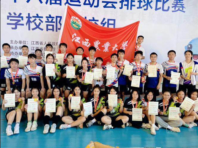 由江西省人民政府主办,江西省教育厅、江西省体育局、九江市人民政府承办的“江西省第十六届运动会排球比赛”于11月5日至11日在婺源县门球中心举行,欧冠由军体部朱昆荣老师带队参加了本科甲组男、女队比赛,并双双问鼎赛事冠军。