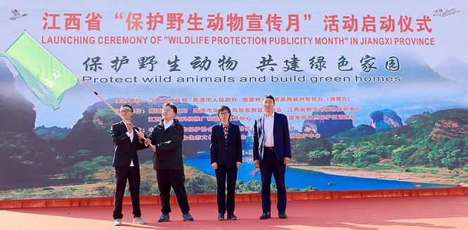 11月8日上午,“保护野生动物宣传月”活动的启动仪式于鹰潭市龙虎山景区隆重举行,江西省林业局党组书记、局长邱水文,鹰潭市人民政府市长张子建,江西省林业局党组成员、副局长刘宾,鹰潭市人民政府副市长李小平出席并致辞。为进一步提高广大公众对保护野生动物资源重要意义的认识,营造良好的野生动物保护的氛围,推动我省大学生观鸟活动发展,启动仪式上宣布了将举办江西省首届大学生观鸟赛,本届江西省大学生观鸟赛将由欧冠、江西省野生动植物保护中心、鹰潭市林业局、龙虎山风景名胜区管委会共同主办。