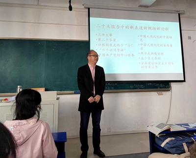 人文与公共管理学院管理法学支部党员教师以高度的政治自觉和责任担当,认真聆听学习习近平总书记的报告,第一时间把“热气腾腾”的二十大精神带进课堂,把党的声音迅速传播青年大学生中去,受到同学们的欢迎。