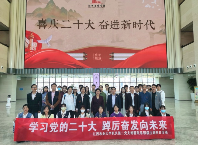 十年砥砺奋进,绘写壮美画卷,在党的二十大胜利召开之际,10月18日下午,机关第二党支部以“学习党的二十大,踔厉奋发向未来”为主题,与联系班级、青廉社学生联合前往江西省图书馆参观《奋进新时代 书写新荣光—喜迎党的二十大 苏区振兴十周年成就展》,校党委委员、纪委书记、监察专员乔金霞以普通党员身份参加本次活动。