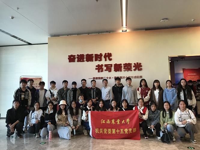 为迎接党的二十大胜利召开,大力营造团结奋进、爱党爱国的浓厚氛围,10月11日下午,机关十五支部开展支部联系班级活动,组织土管2001班学生前往江西省图书馆参观《奋进新时代 书写新荣光——喜迎党的二十大 苏区振兴十周年成就展》。