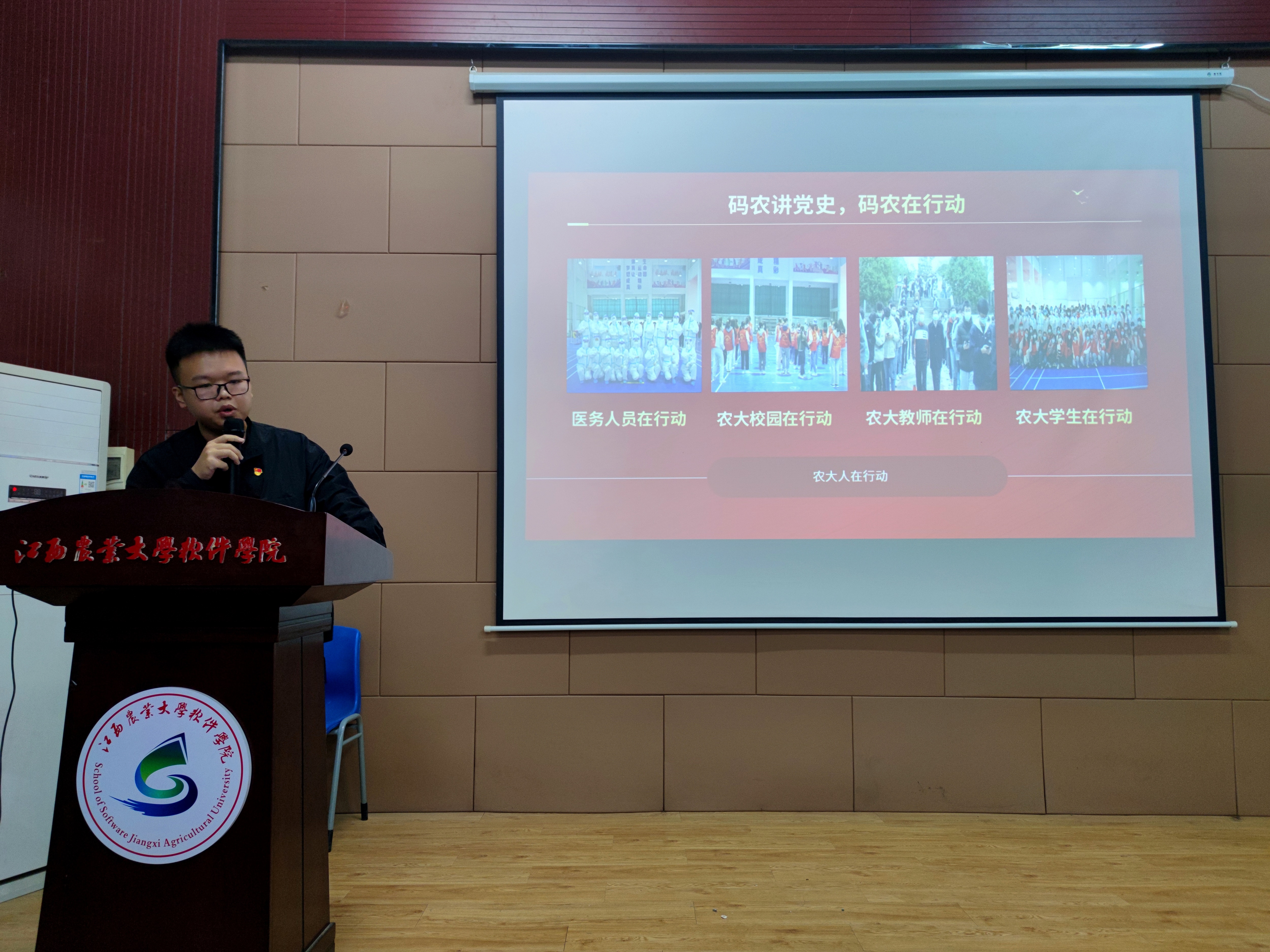学思践悟,以知促行。深入组织学习《习近平谈治国理政》第四卷,将学习成果转化为“为群众办实事”的实际行动。通过“江农小码”公众号开展《砥砺前行》《建功新时代》《辉煌百年》《满江红》等“红色走读”优秀作品展示,传承红色基因,赓续红色血脉,巩固拓展党史学习教育成果。