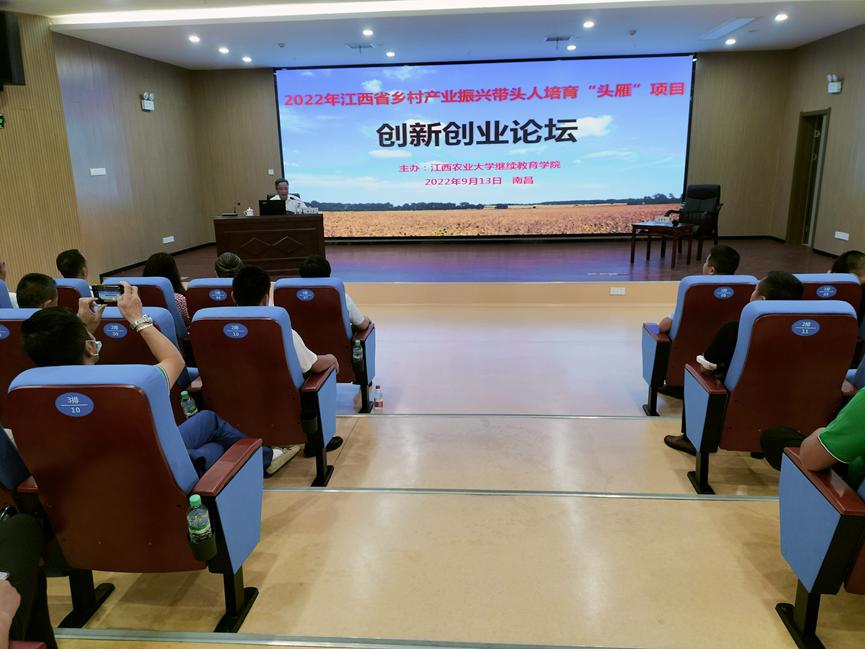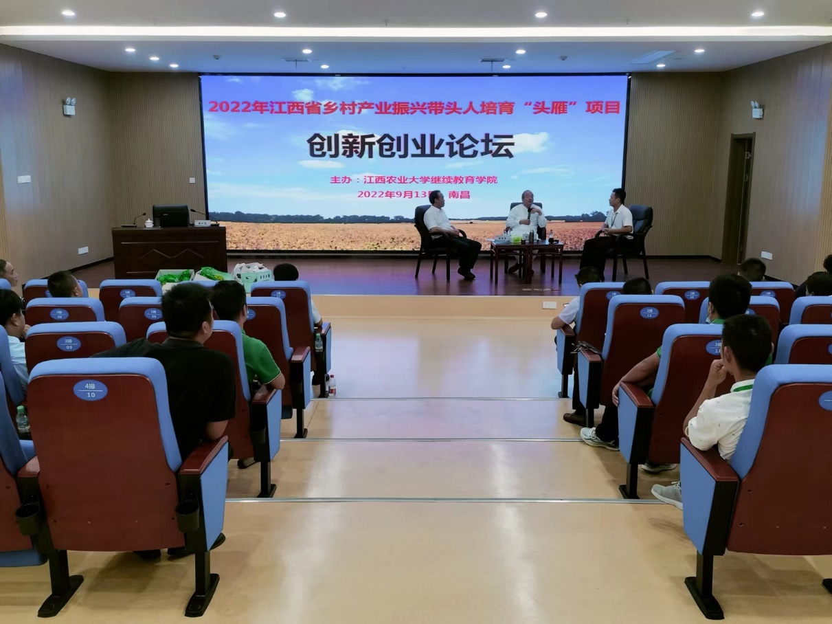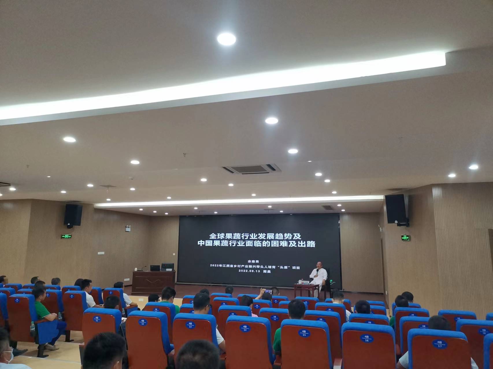 为更好落实乡村产业振兴带头人的培训工作、丰富培训内容、拓展学员思维宽度,9月13日,深圳百果园实业股份有限公司董事长余惠勇先生受邀回到母校,与江西省乡村产业振兴带头人“头雁”项目培训班第一期学员进行创新创业交流分享。论坛由林小凡副校长主持,继续教育学院领导和教职工及“头雁”项目培训班第一期全体学员参加了交流会。
