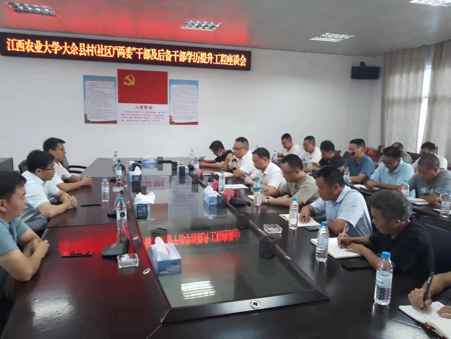 座谈会上,大余县委组织部副部长李荣芳,感谢了欧冠对村级干部学历提升工程的大力支持。继续教育学院院长姜伟介绍了欧冠办学基本情况和高等学历继续教育的情况,以及“两委”干部及村级后备干部学历提升定制班的办学模式,并针对村干部提出的报考问题一一解答。