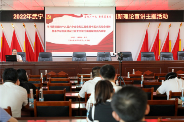 相关链接:武宁县高度重视理论宣讲工作,有针对性地开展集中宣讲活动,形式多样,内容丰富,注重邀请专家集中讲、领导干部带头讲、创新方式互动讲、多级联动分类讲,着力在“接地气、暖人心”上下功夫,把党的创新理论送入千家万户。