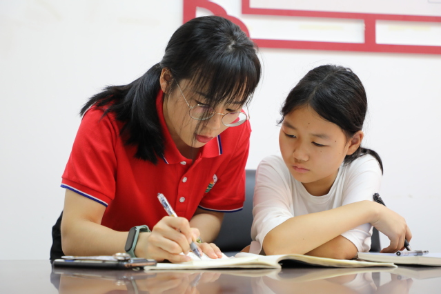 在学业课堂上,理论宣讲团用讲授、演示、讨论相结合的方式进行授课,充分激发同学们的好奇心和求知欲,孩子们的眼睛写满了对知识的渴求,对未来的向往。队员黄健从汉字的由来及演变进行了简单的介绍,向同学们分享讲好中国话、写好中国字的重要性和必要性。在练字过程中及时指出不正确的地方,小到一点一横一竖,大到每个字的间架结构,队员们都带着同学们仔细斟酌,反复推敲。在课后,队员们开始对同学们进行一对一的作业辅导,着力解决同学们在假期作业和日常学习过程中遇到的难题,努力帮助同学们学业进步。