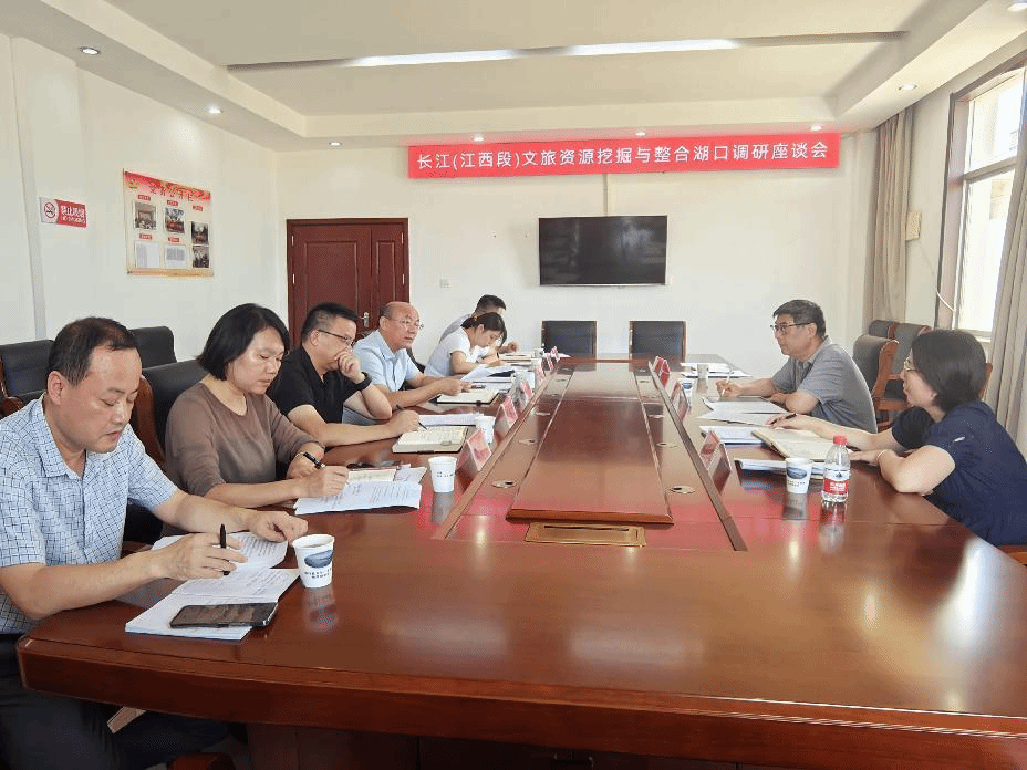 调研组前往湖口县长江鄱阳湖水生生物保护基地等多处进行了实地调研考察,并且通过召开座谈会的形式,详细了解了湖口县旅游业的优势和痛点。社员们结合自身专业和特长,从长江(江西段)文旅资源整合的角度,积极想办法、出主意,共商对策措施,共谋今后旅游业的发展。