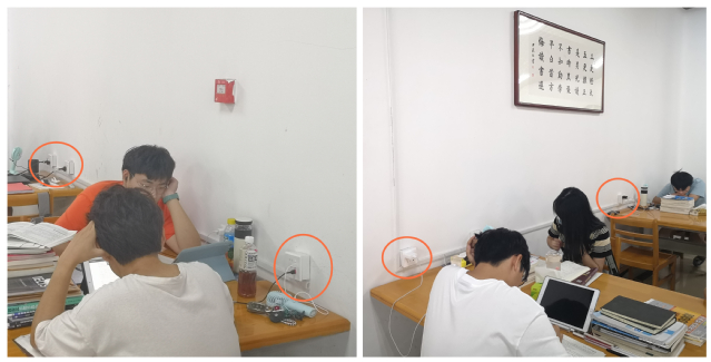 馆领导高度重视,多次实地调研指导,积极解决读者“电量焦虑”。为了能让读者在开学之初便能用上新插座,也为了不影响读者入馆体验,图书馆工作人员利用暑假闭馆的有利时机进行增配插座改造。盛夏八月,骄阳似火,酷暑难耐,馆里温度高达40度,工作人员忍受高温,挥汗如雨地工作,为图书馆一楼自修室靠墙增配20个带USB的插座、四楼阅览区牵线200米增配35个带USB的插排、东区分馆二楼报刊阅览室靠墙增配20个USB插座,受到读者的一致好评。