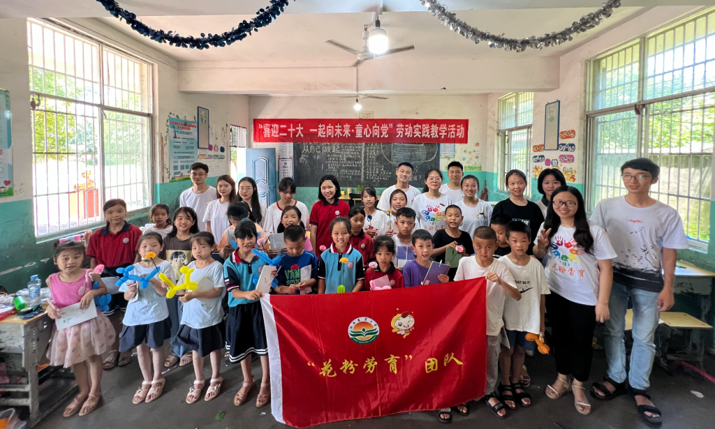7月9日,师生团队围绕欧冠国家级大学生创新创业项目《花粉劳育》、省级社会实践一流本科课程《创新创业基础》的有关实践教学内容,深入金坪民族小学开展“喜迎二十大 一起向未来 童心向党”劳动教育主题活动。通过民族传统文化教育的课程传授、民族文化文创设计与制作的劳动实践及作品展示与思考等环节,帮助当地小学生们进一步增强民族自信心和自豪感,提升创新思维意识与创造动手能力。