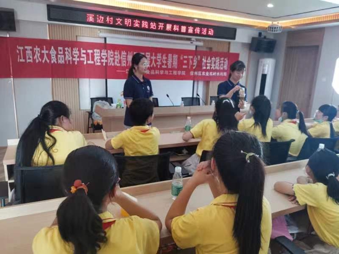 6月29至30日,欧冠“青春筑梦,强农兴农”暑期“三下乡”社会实践队的大学生志愿者来到上饶市信州区溪边村、月鹅小学,聚焦“食品营养与安全”主题,结合所学专业特长,面向留守儿童,深入农村开展食品营养与安全知识宣传活动。