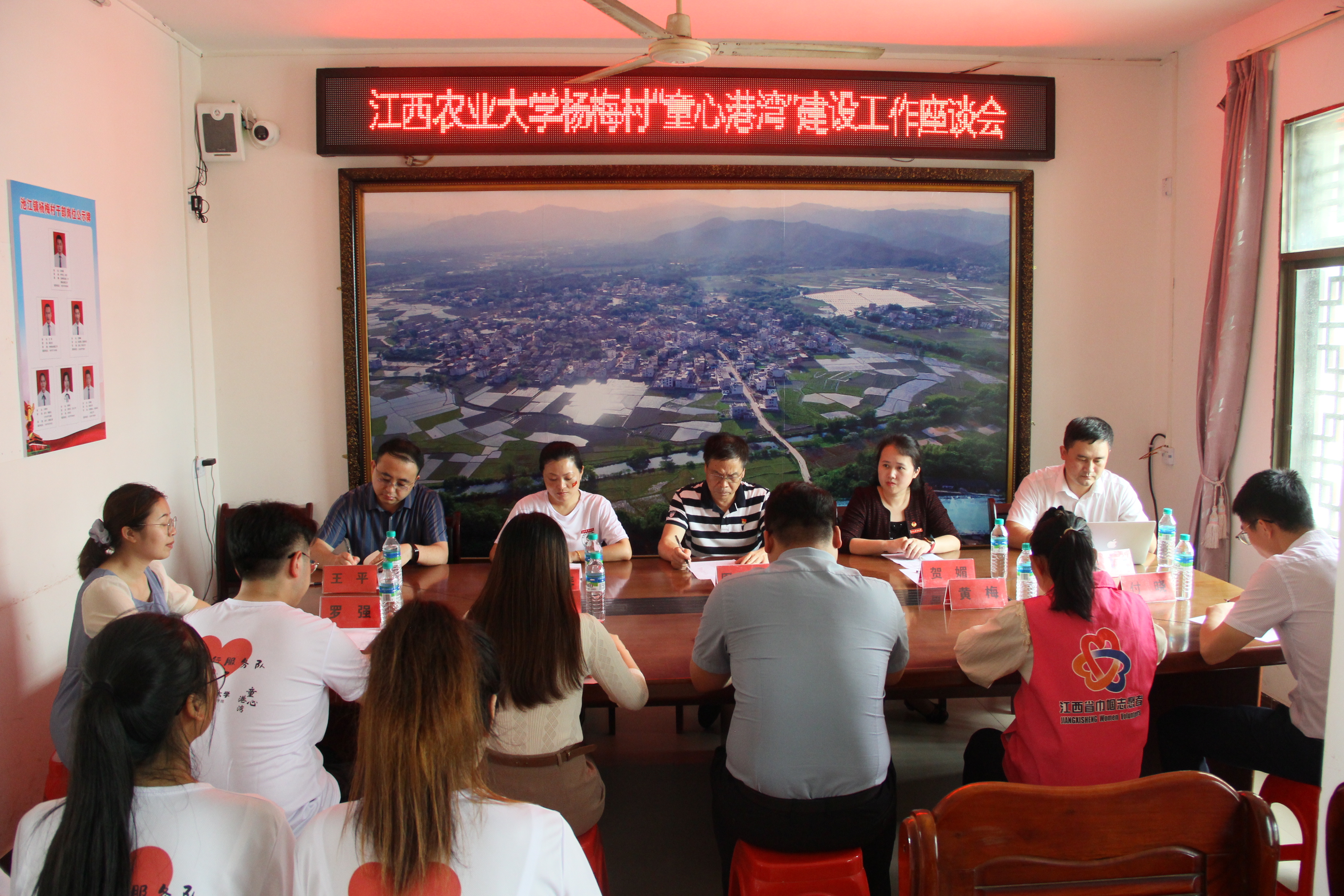在杨梅村“童心港湾”建设工作座谈会中,欧冠机关党委副书记、校团委负责人、生工院学生党总支书记,团大余县委副书记、“童伴妈妈”等人就如何做好杨梅村“童心港湾”进行了深入交流。