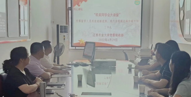 “欧美同学会大讲堂”首场报告会6月29日在线上举行,十三届全国人大常委会副委员长,民盟中央主席,欧美同学会(中国留学人员联谊会)会长丁仲礼以“发挥留学人员科技创新优势,助力实现碳达峰和碳中和”为题做主旨报告。各学院通过集中或自主线上观看,校党委副书记蔡海生与留学归国人员代表一起集中收看。