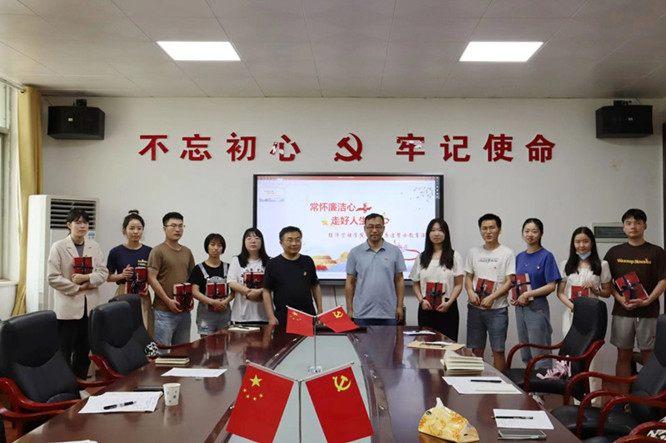 随后,与会人员集中观看了警示教育片《零容忍》第三集《惩前毖后》视频,郭军海书记、翁贞林院长在观看视频后代表学院向毕业生党员赠送《新时代追梦人榜样的力量》、《清正廉洁作表率50讲》、《正道直行》等理论学习材料,教育引导学生守初心、讲规矩、知敬畏、存戒惧。毕业生党员代表2022年江西省选调生曹颖、龙欢、保研学生王蓉结合自身情况谈感想,他们纷纷表示要筑牢思想防线,坚持以案为鉴,时刻绷紧反腐倡廉这根弦,加强品德修养和理论学习,自觉接受组织和群众的监督,在今后的工作中,做一名有责任、有担当、有觉悟的合格党员。