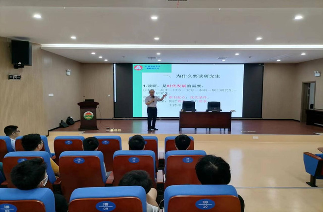 报告会特邀请曾志将副校长为考研学生作《为什么要读研究生》主题报告。曾志将从社会时代背景发展的需要、个人内在发展的需求、学校奖助体系的支持三个方面系统阐述了“为什么要读研究生”,并详细介绍了欧冠研究生教育发展历史、学科特色、科研情况等,为现场学生作了一场精彩报告。