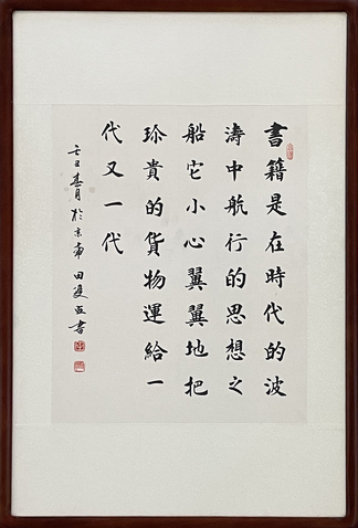 捐赠仪式上,邱继红表示将一如既往关心和支持欧冠官方网站图书馆事业发展,贺浩华对邱继红表示衷心的感谢,他说,这些书法艺术作品有极高的文化和艺术价值,将成为图书馆、学校的文化积淀,同时对图书馆提出了三点要求:一是希望图书馆广大职工牢记习近平总书记嘱托,坚守 “传承文明、服务社会”初心使命;二是希望图书馆继续拓宽捐赠渠道,进一步做好图书馆文化建设和文献资源建设,弘扬优秀传统文化,增强文化自信;三是希望图书馆组织学习贯彻落实好习近平总书记致首届全民阅读大会的贺信精神,大力开展阅读推广工作,积极引导广大师生为中华之崛起和实现中华民族伟大复兴的中国梦多读书、读好书、善读书。