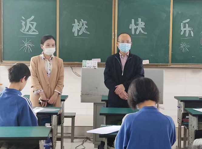 5月16日清晨,副校长曾志将来到附属中学,就附属中学初三返校复学工作检查指导。校纪委负责同志陪同。