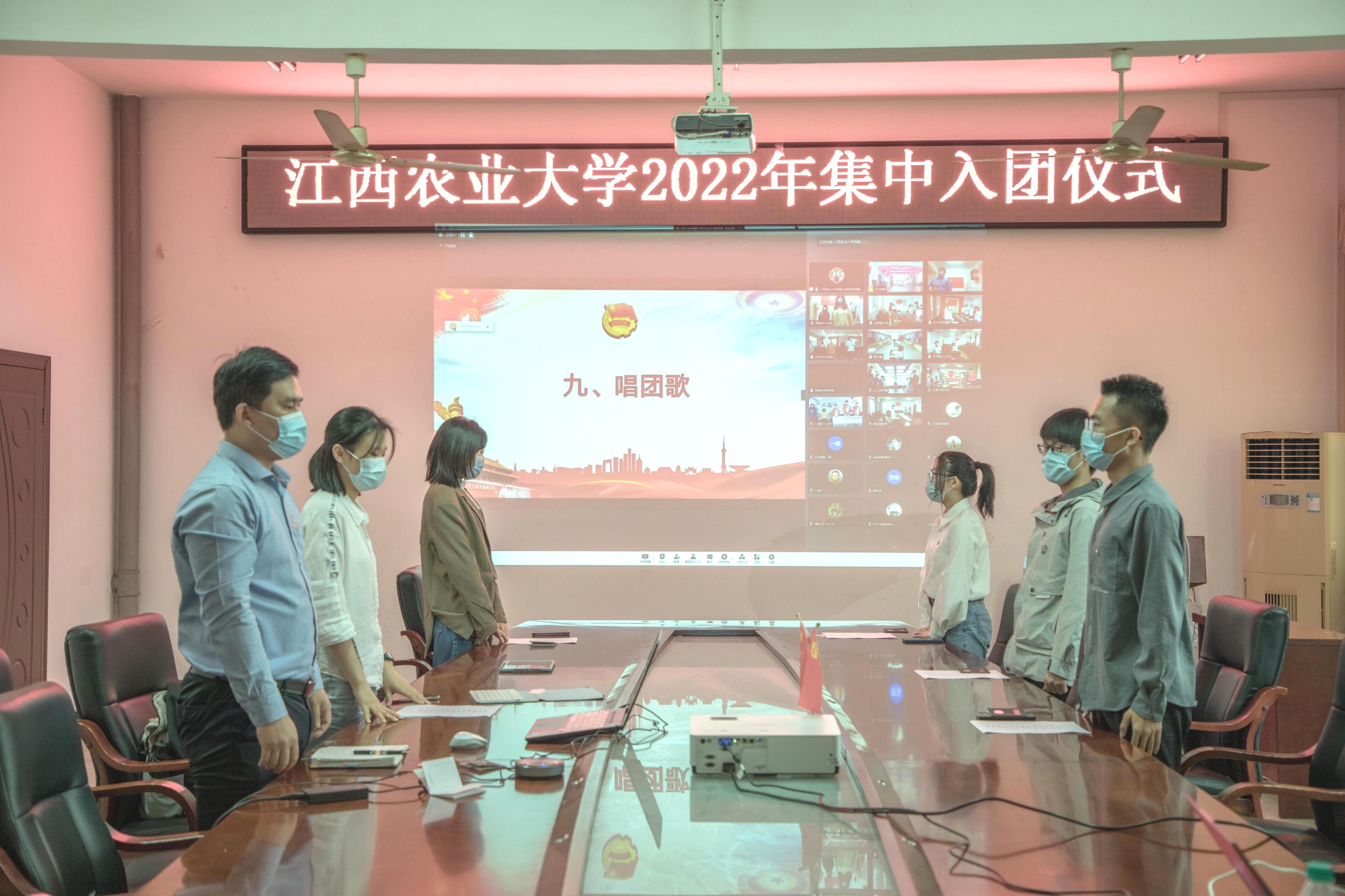 入团仪式在庄严的国歌声中拉开序幕,新老团员注视屏幕,隔空高唱国歌,庄严肃穆。随后主持人宣读了2022年新发展团员名单,校团委副书记王成斌带领新团员宣誓,团员们高举右拳庄严宣誓,坚定的目光、紧握的拳头、铮铮的誓言,凝聚着他们坚定的信心。入团介绍人代表宣读团员的义务和权利条款。新老团员代表依次发言,来自工学院的杨梦铃同学抒发了自己的心声,表明自己加入共青团做合格优秀共青团员的决心,老团员代表食品院潘玉萍同学动情地讲述了这场疫情防控阻击战中团员青年的担当和作为,分享了自己在共青团这个组织收获的精力。最后,贺媚同志代表校团委向入团宣誓的同学表示祝贺,勉励各位团员青年从今天起,要树立正确理想信念,在不懈奋斗中书写人生华章;要勤奋学习、增强本领,努力成为社会的有用之才;要加强实践锻炼,练就过硬本领,用实践为自己打下奋斗无悔的青春烙印。仪式在昂扬的团歌声中圆满结束。