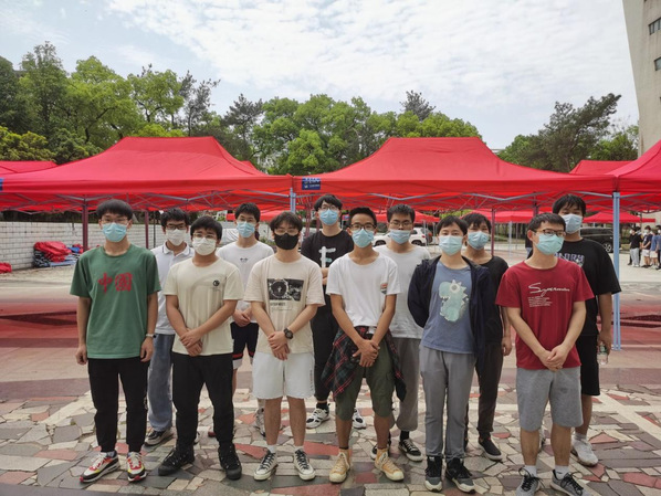 “我们先把这几个帐篷放到旁边”“那个角去一个人,大家一起把帐篷支起来。”在接到任务后,惟义动科2101班付坤第一时间报名,与志愿者们一起协助校团委搭建了二十余顶遮阳帐篷,解决了核酸检测场地的问题。