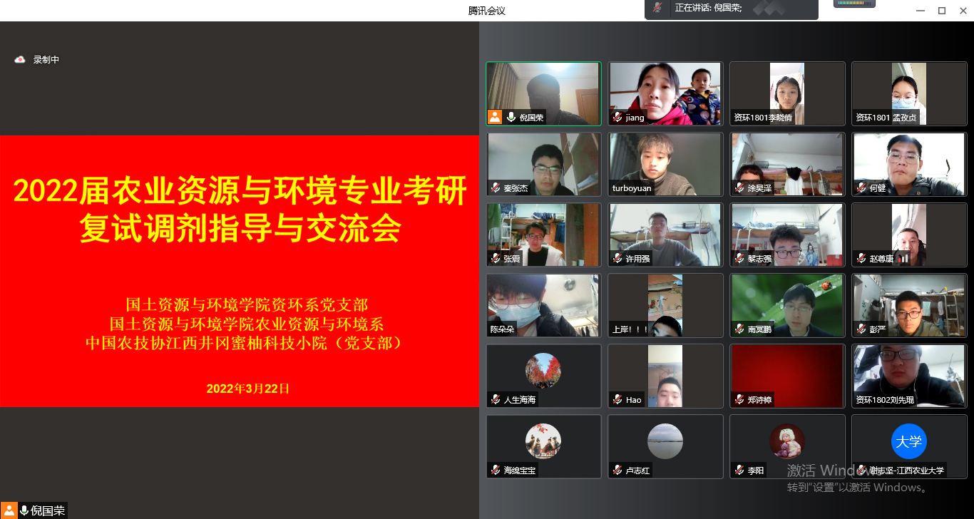 “疫情防控工作开展到哪里,党组织的战斗堡垒作用就发挥到哪里”,国土学院坚持以党建引领防疫工作,进一步明确工作职能,指导各基层党组织采取线下线上结合的方式,及时开展相关工作,充分发挥党组织的政治引领、统筹协调、宣传发动、思想疏导作用,有效地把党的组织优势转化为工作优势。当前是考研复试调剂的关键期,学院全体领导班子对接支部一起为学生想点子、出对策、给思路,尽最大努力保证考研学子复试顺利,一战成“硕”。3月22至23日,学院五大系,四个党支部开展“研途顺利,我们在‘疫’起”线上主题党日活动。土管地信系党支部书记朱泰峰老师,结合近年社会岗位需求和专业学科发展趋势,就考研学子复试有关面试技巧进行分析,并邀请往届调剂成功学子进行了经验分享;资源环境系党支部赵尊康、魏宗强老师结合各大高校研究生招考工作实际,对学生寻找调剂院校信息和导师提供了方法思路;旅游水利系教工党支部则通过整合调剂信息,给10位考研调剂学生进行一对一院校匹配……