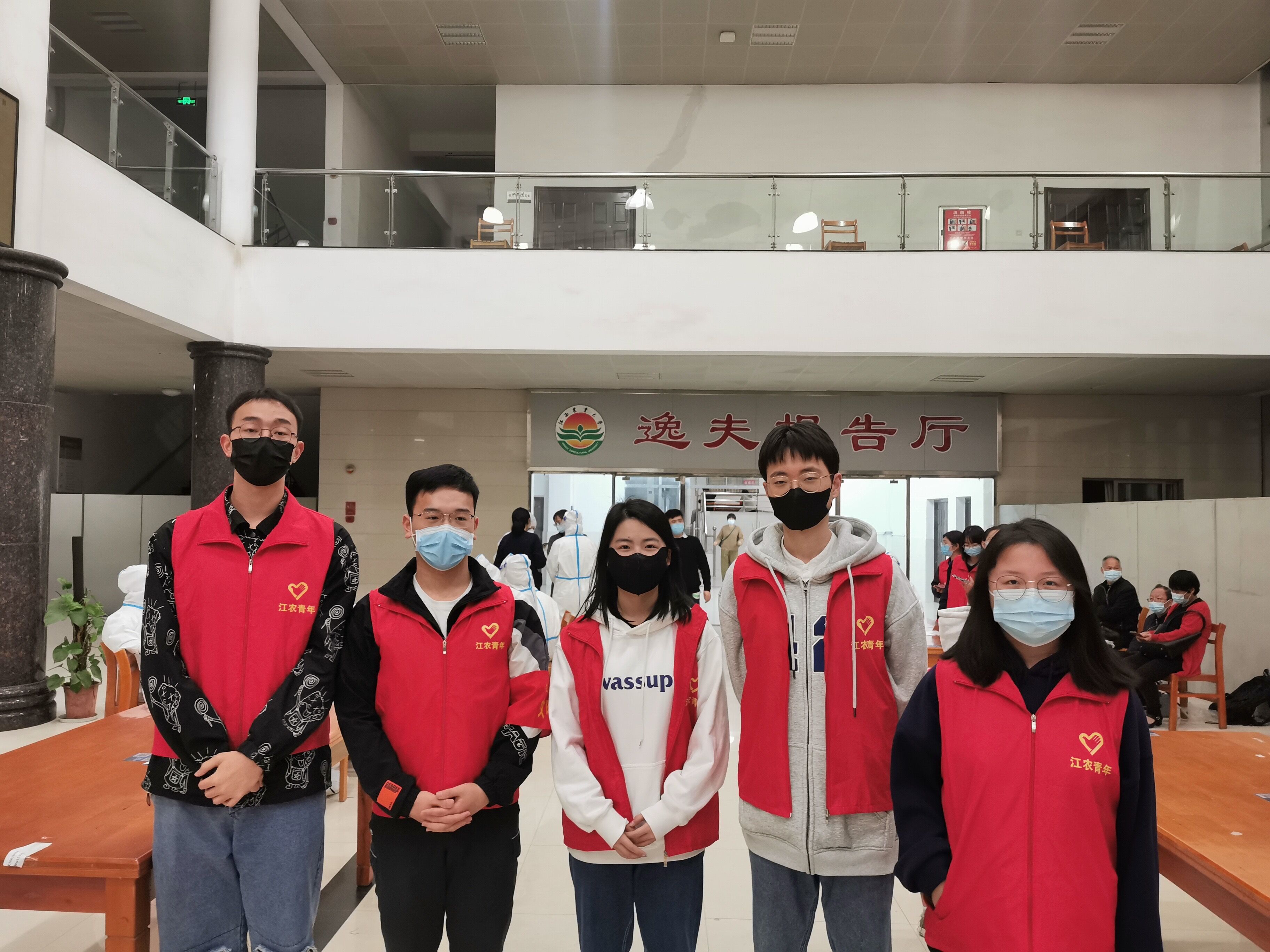 “我是党员,我去”“我报名参加”,这是学校志愿者群内收到的消息。学院张嵚、黄华军、张婷、谢凯柳等党员教师坚持把初心写在行动上,把身份亮在一线上,第一时间参与到学校的疫情防控志愿服务中。井冈蜜柚科技小院党支部书记谢志坚,是第一批走上岗位的10名志愿者之一,“能守好校园的第一道防线,是我的职责和使命,也是我的骄傲!”。舍小家为大家,学院辅导员张勇老师,妻子作为医护人员奋战在抗击疫情的第一线,家中还有一岁的孩子需要照料。但是他坚持留在岗位,组织学生开展核酸检测,处理毕业生工作事宜,“心中有党,眼中有光”,他用最朴实的行动阐释了一位党员、一位父亲教给孩子的实践课。党员上官文高同学第一时间报名参与到核酸检测场地搭建和现场秩序维护工作中,“作为一名党员学生,这个时候就是要亮身份,亮职责,能为疫情防控做点事,我觉得很开心”。