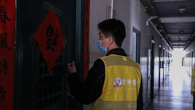 软件学院党委副书记朱国海和辅导员杨玲玲家住校外,在接到学校全员做核酸和学校封闭式管理的通知后,他们选择坚守在本职岗位上,克服艰苦的条件,吃住都在办公室。软件学院辅导员、学生第三支部书记杨玲玲老师家中有三个学龄前儿童,丈夫在部队服役,平时都是依靠长辈帮忙,疫情当前,与家人商量后,毅然选择坚守在岗位上,与学生们同心战“疫”,共克时艰。在这场看不见硝烟的“战疫”中,辅导员老师们用心守护着每位学生,一个个奋战在疫情防控第一线的最美身影,正是身为辅导员勇于担当的真实表现,更是身为教师党员践行初心使命的有力写照。