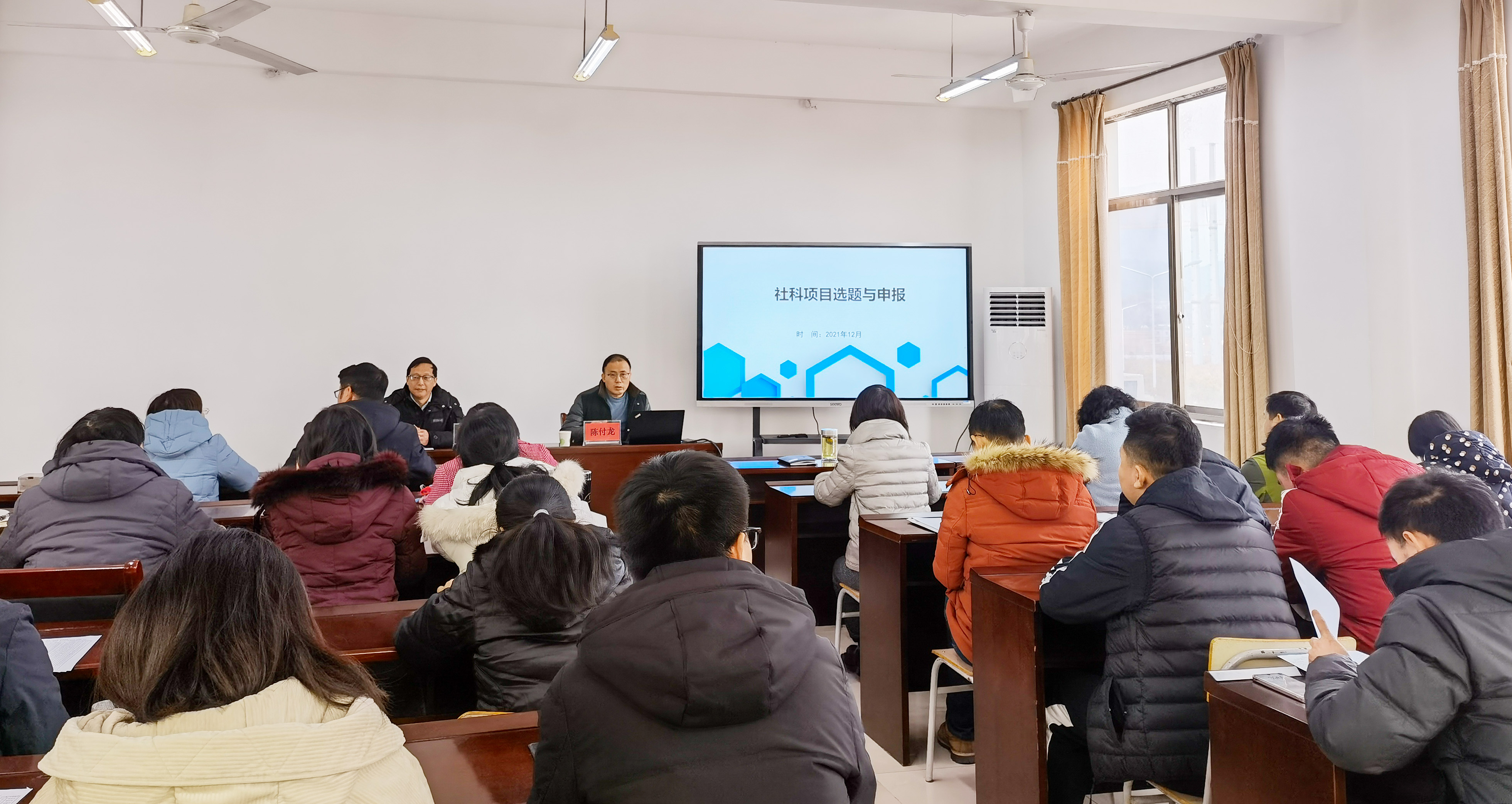 为做好2022年国家社科基金申报工作,提升学院国家社科项目申报质量及申报命中率,12月28日下午,马克思主义学院邀请江西服装学院党委书记陈付龙教授作了题为《社科项目选题与申报》的辅导报告。院长刘汉一主持报告会,学院教师参加了报告会。
