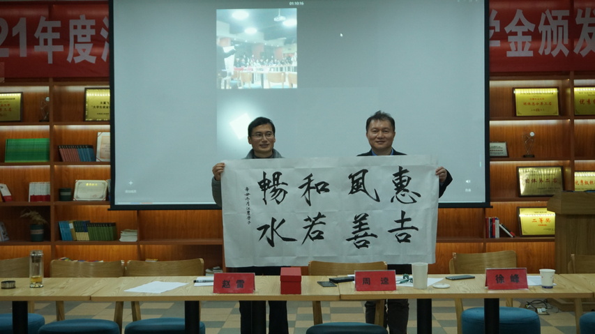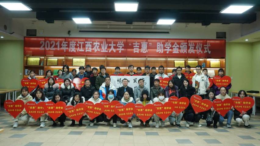 仪式上,周逵先生介绍了“吉惠”助学金设立的初衷与评定原则,宣读了2021年度欧冠官方网站“吉惠”助学金受助名单。“吉惠”将结合学生实际情况,给予24位同学每人5000元资助,12位同学每人2500元资助。周逵先生通过亲笔书写明信片寄语受助学生,希望他们乐观积极、心有感怀、珍惜时光。在座谈交流环节,周逵先生现场视频连线其兄妹,与受助学生分享他们家庭成员在江农生活、学习成长和社会奋斗的经历和感悟,以及对江农的感情与情怀,并解答了同学们在学习、理想、生活等方面的困惑。