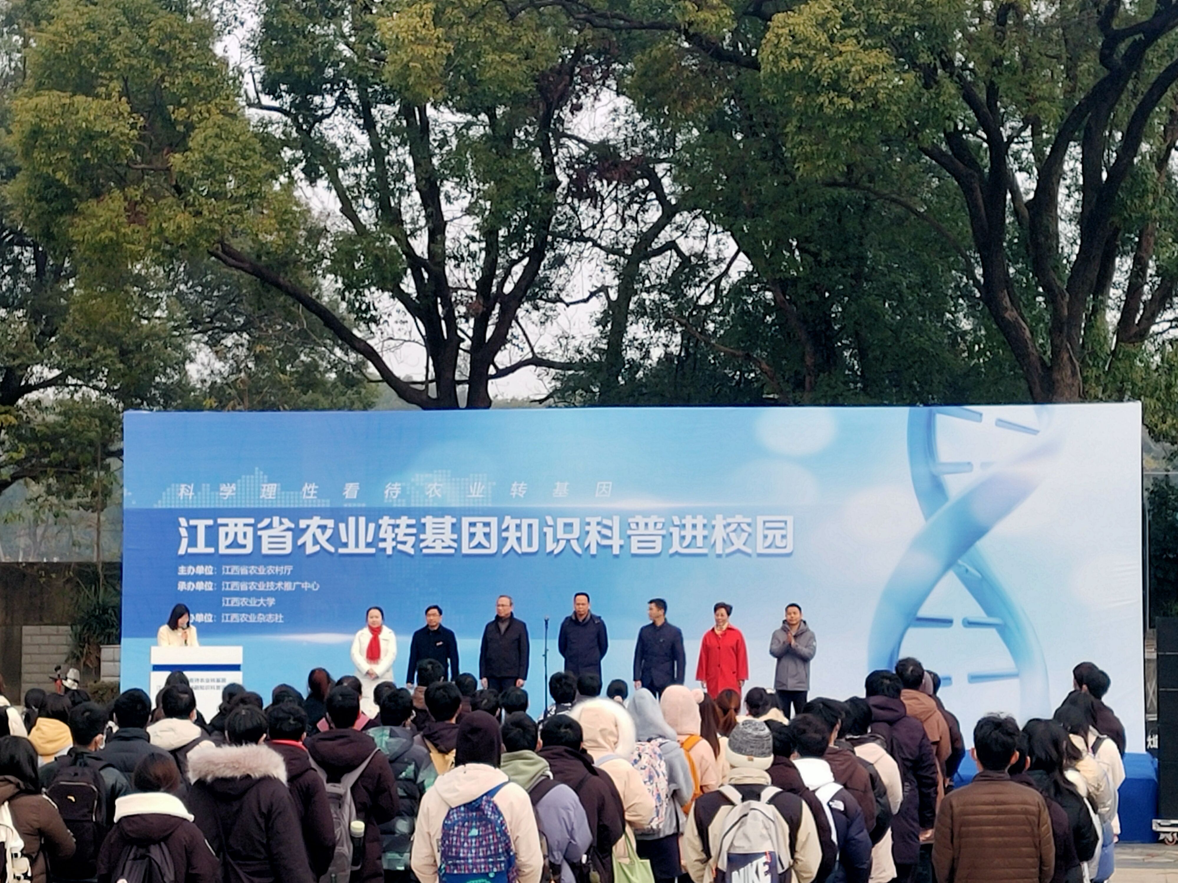为宣传普及农业转基因知识,12月29日上午,农业转基因知识科普进校园活动在欧冠体育训练馆前举行。本次活动由省农业农村厅主办,省农业技术推广中心和欧冠共同承办,江西农业杂志社协办。欧冠副校长黄英金、省农业技术推广中心副主任曹阳、省农业农村厅科教处四级调研员吴加发、省农业技术推广中心科宣处长潘华和欧冠团委、军事体育部、继续教育学院等单位负责同志以及150余名学生参加活动。