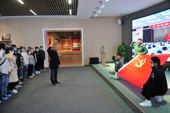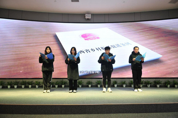 一串串数据,一个个感人故事构筑起脱贫攻坚的长城。在讲解员的引导下,党员们在漫漫长廊中回首中国漫漫脱贫路,了解在以习近平同志为核心的党中央坚强领导下,在全省人民共同努力下,我省脱贫攻坚取得的非凡成就。展览馆前,“一会一演”党小组成员代表朗诵诗歌《请党放心 强农有我》,“牢记强农兴农使命担当,立志强农兴农,践行知农爱农,在劈波斩浪中开拓前进,在披荆斩棘中开辟天地,在攻坚克难中创造业绩!”一句句郑重有力的誓言,彰显着新时代中国青年的志气、骨气、底气。现场全体党员还面向党旗,庄严宣誓。