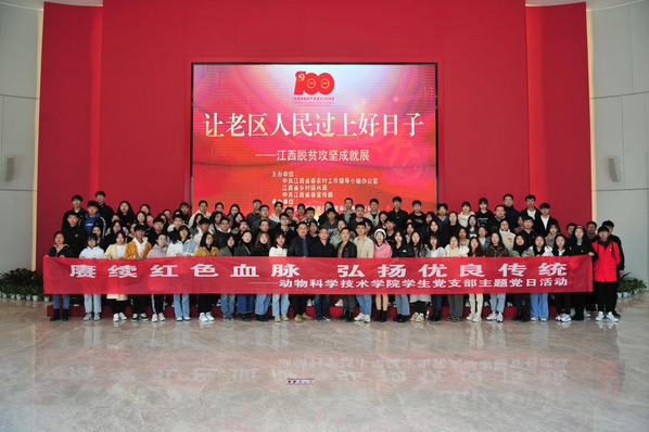“牢记强农兴农使命担当,把最美好青春献给祖国和人民!请党放心,强农有我!”近日,动科院“一会一演”党小组把“一会一演”组织生活会搬进脱贫攻坚成就展,教育引导学生党员以强农兴农为己任,赓续红色血脉,弘扬优良传统。