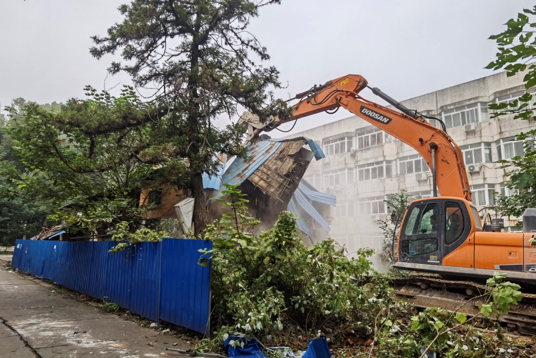 10月22日,资产与实验室管理处、校园建设处、保卫处、后勤服务集团联合对蛟桥商店原农大分店房屋进行拆除,副校长贺浩华深入蛟桥商店原农大分店危旧房拆除施工现场进行实地察看和指导,详细地询问施工进展情况。