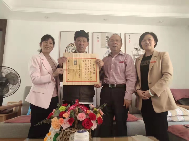 为表达对捐赠史料的感谢,10月12日上午,副校长曾志将在档案馆、校友办负责人的陪同下,到唐广文家中看望了93岁高龄的老教师。曾志将代表学校对唐广文老师的捐赠行为表示感谢,感谢他为学校所做的贡献和捐赠的珍贵档案史料,向他送上了捐赠证书。唐广文老师捐赠的江西农学院毕业证书弥足珍贵,丰富了学校的档案馆藏,为进一步开展校史研究提供了宝贵的第一手资料。