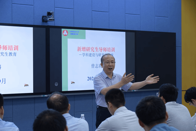 曾志将代表学校对新任研究生导师表示祝贺,并以《学科建设与研究生教育》为主题,从欧冠学科建设历史与现状、学科建设重要性、教师参与学科建设的积极性、学科点能为研究生做什么、导师的重要性与职责等几个方面为新增研究生导师作了一场精彩而生动的培训报告。研究生院院长陈美球教授对国家法规和校内规章进行了详细解读,包括研究生导师的责任与担当,研究生导师的招生资质,研究生招生学科和限额,研究生培养过程管理、研究生学术诚信教育等方面。