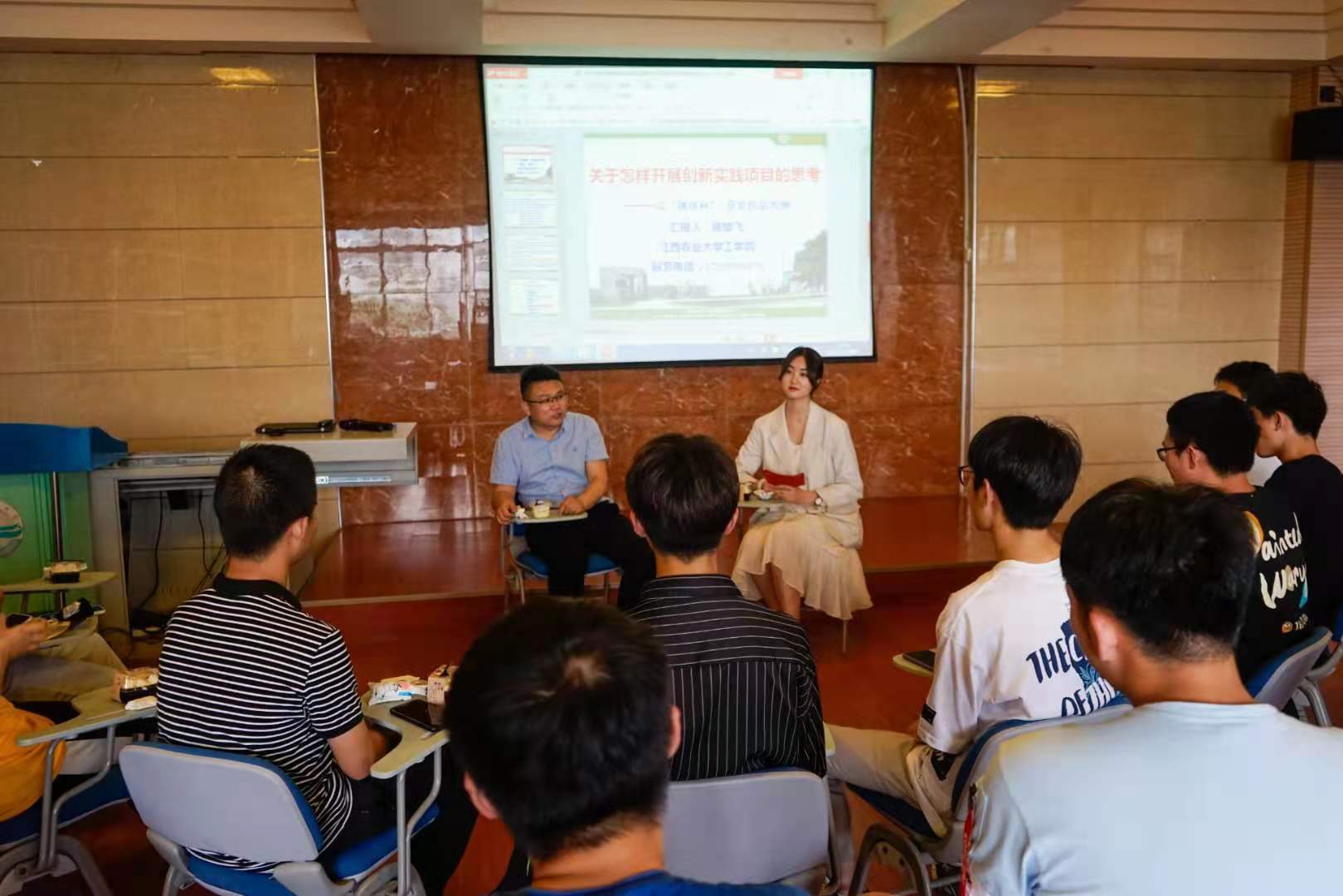“同学们平时要注意培养对项目关键词的敏感度”“多读书,读好书,会读书”“在进行创新项目时,难免会遭遇困难,要善于组织思路和分析原因,从失败中成长。”在互动环节中,陈博士讲述了自己与农业结缘的故事。他用自己的切身经历告诉青年学生们:要学会从事业中得到认可和满足,从认可中积累成就感,你便会在不知不觉中爱上自己的事业。在问到处理科研中遇到的问题时,他感慨道,“我们不要光埋头拉车,也要抬头看路。要停留,要‘发呆’,当然不是真的发呆,而是要学会思考与总结”。